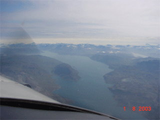 It seems that we always hit the low pressure areas between our destinations. Great weather in any case over Greenland. We can see the first icebergs in the clear air 100 NM away from the coast. The eternal ice of the island lies glistening in the sun and you can’t make out the horizon between the white clouds in the sky and the shining white snow on the ground. The approach to Kangerlussuaq as Sondrestromfjord is known officially, was as beautiful as it was interesting in the best VMC conditions in the fjord. We are coming to the conclusion that it would be better not to overshoot the localizer in IMC towards the west – the cliffs of the fjord make a threateningly solid impression and are rather near. Very friendly Danes on the ground with quick tanking and moderate prices – Jet A! at 50 ct. Our accommodation is in the “longest hotel in the world” – the Kangerlussuaq Hotel, right next to the airfield, rather like the Loftleidir in Reykjavik. The last room in the civilised world. You almost need a sandwich to make it there alive. Dinner is in a dining hall, a “restaurant” with a wine list and waiter etc. separated by a glass door. When you remember where BGSF is on the planet and that it is a village with about 500 inhabitants, all in all it was a pleasant evening. Heavenly peace at night, view of the railway, the glacier in sight. As far as navigation is concerned, you cannot