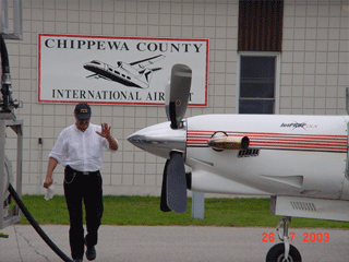 We want to continue, but then the message comes: NOT YET POSSIBLE – the agricultural clearance (AC) is missing!?!? When we enquire what that is we are told that an agricultural inspector (AI) has to clear the planes. This is new in this form, and anyway KCIU has only been approved for customs and not for the AC. This has been applied for, otherwise we would have had to divert to Detroit for the AC – on account of the rubbish. The little AI, looking like Smörebröd, finally arrives with his Germanic name about 30 minutes late. We ask him about his name – bulls eye. We were lucky he was in the vicinity and available. After all, he was the only one in a radius of 300 miles and they took the AC very seriously. The background: In the opinion of the Homeland Security Office, rubbish is incredibly dangerous, ranking immediately under smuggled plutonium. This is the reason for the strict controls throughout the country and currently there are hardly any airfields that can cover both immigration and AC. Anything remotely to do with food, meat, sausage, hamburgers and especially the packaging must not fall on American ground, otherwise MCD (mad cow disease) threatens. All this has to be disposed of at a special refuse incineration plant in Detroit. The threat is everywhere. What we were carrying? Only chocolate and plastic rubbish. That seemed safe enough, but the DB had a banana and several apples on board. The regulations demand that these be destroyed, but they don’t say exactly how. On reflection he comes to the conclusion that his understanding was that it would be admissible if we ate them immediately. (We learned later when staying at Goose Bay on our way back that we had had a lucky escape. The accompanying troupe of a fleet of Tornados on the way from Lechfeld to Las Vegas had to strip down to their underpants in spite of their NATO and Allied status. The crew of the Airbus Super Transporter from Airbus Industries coming to the show the next day also chose KCIU as airport of entry. It’s a strange feeling, the crew told us, to land that huge plane at an uncontrolled airfield using IFR and Unicom Frequency, only to then have to search for the customs barracks.) Once the garbage threat has been brought under